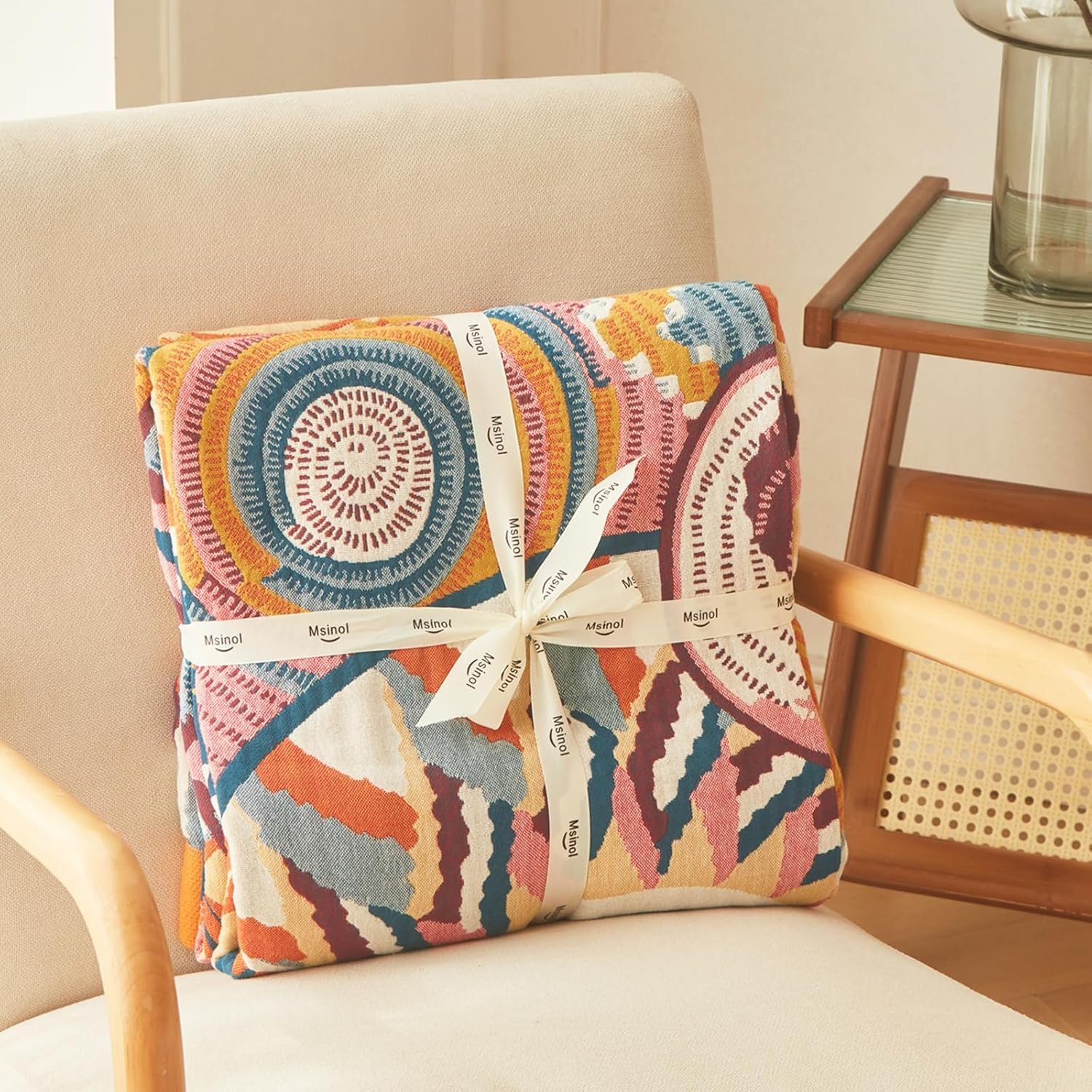 Wrapping yourself in this ultra-soft, pure cotton muslin is an immediate act of self-kindness, offering a gentle, breathable embrace that soothes your skin and calms your nervous system. The beautiful two-sided “Colorful Art” pattern instantly serves as a luxurious backdrop for your quiet moments, transforming your couch or bed into a personal retreat where peace and vibrant style coexist.